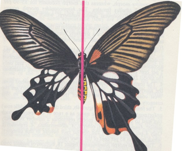 I hope this isn’t nit-picking or spoiling a good story with needless facts, but this sent me to my battered copy of Mimicry in Plants and Animals, Wickler (1968).